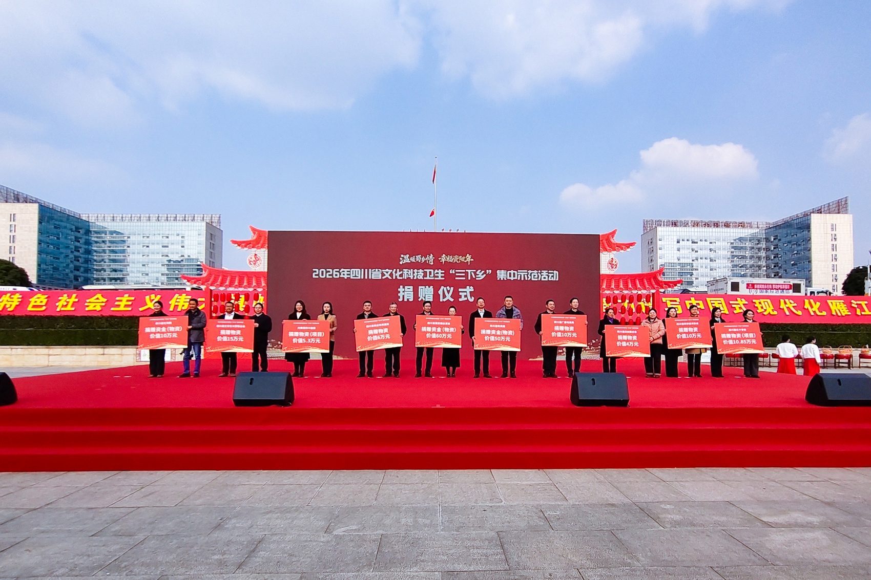 今年的“三下乡”集中示范活动得到众多单位的积极响应,四川发展(控股)公司、蜀道集团、川投集团、省能投集团、省商投集团、四川新华出版发行集团、四川天府银行等纷纷参与其中,21个省直部门(单位)捐赠了书籍、农业农资、医疗设施、文体用品等地方需要的物资以及项目等,总价值超1300万元。雁江区政府相关负责人表示,这些物资和项目将为雁江区的文化培育、产业升级、医疗提升提供有力支持。