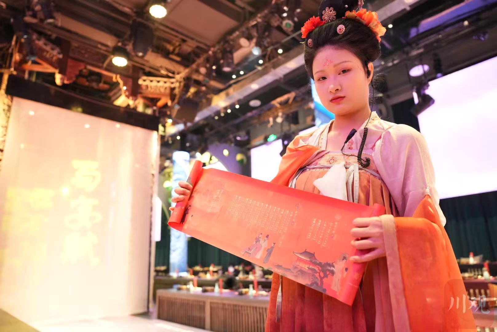 集表演、文化体验与餐饮于一体的新业态,近年来越来越受青睐。蜀宴赋营销运营总监陆俊介绍,一场表演时长90多分钟,游客身处古典环境,使用古典器具,不少人还会搭配古装与妆造,这早已不是简单的就餐,而是一场沉浸式的古典“流觞曲水”。