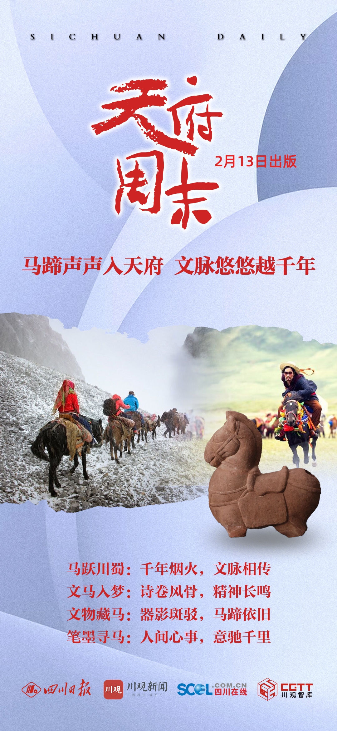 蹄疾步稳,丙午将至。当都市的喧嚣让我们渐渐淡忘这位昔日挚友,《天府周末》借马年新春之势,重磅推出特别策划,带您重新读懂“马”的文化密码。从四川特有的马种源流,到文物里的龙马精神;从历史长河中的汗马功劳,到名家笔下的跃马扬鞭。辞旧迎新,且随我们策马扬鞭,共赴一场跨越古今的文化之约。