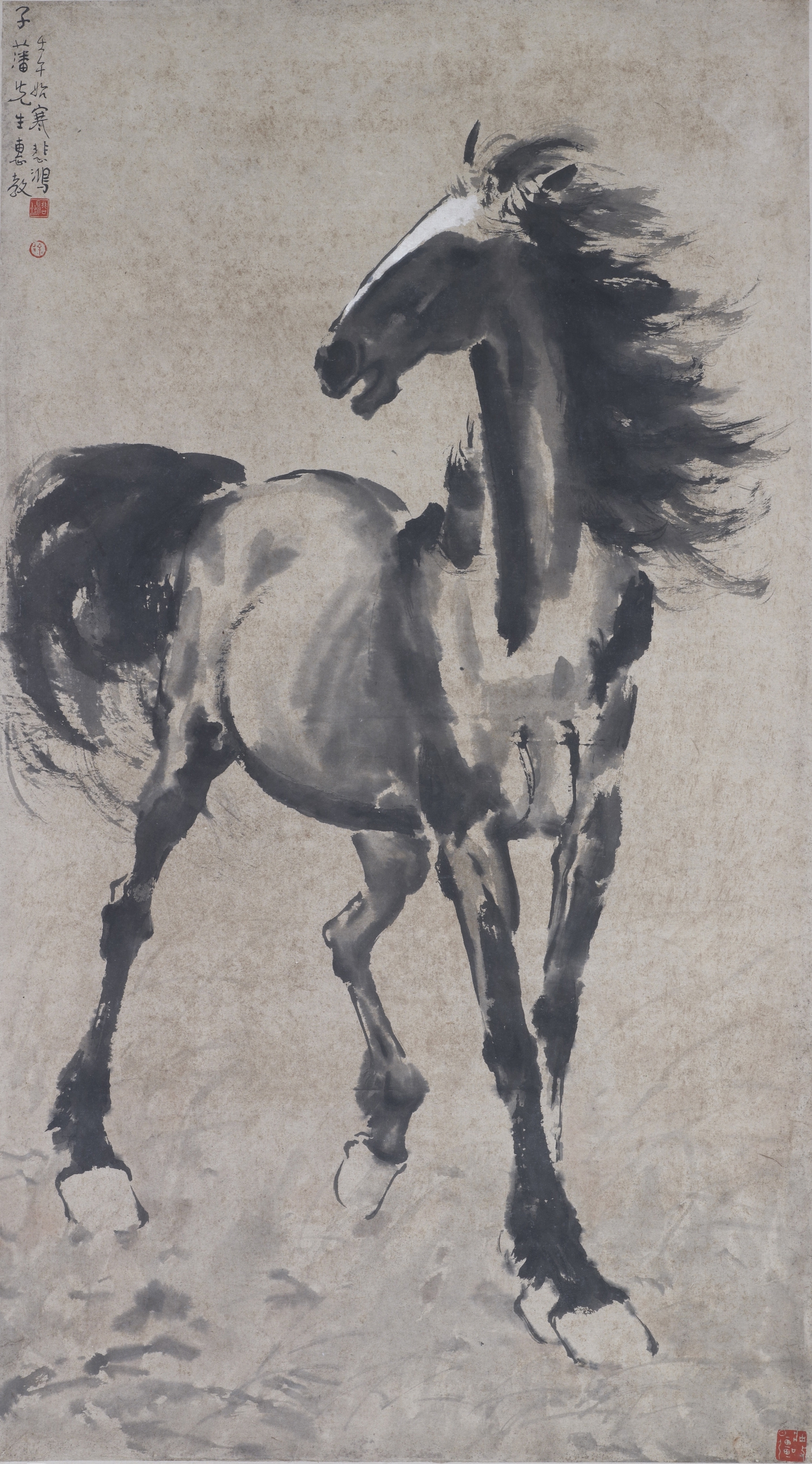 大家都知道徐悲鸿爱画马。因为马的形体高大壮美,具有劲骨健肌的雄姿和飞奔的神速,具有忠于职守的品格和勇敢战斗的精神。 它在人们的心目中是人才的象征,是民族振奋的象征。所以,在民族危难时刻,徐悲鸿各种气质的马图,呈现出了一种与人民群众、与家国社会同呼吸共命运的特点,彰显着一种集体性的人文关怀和社会精神。