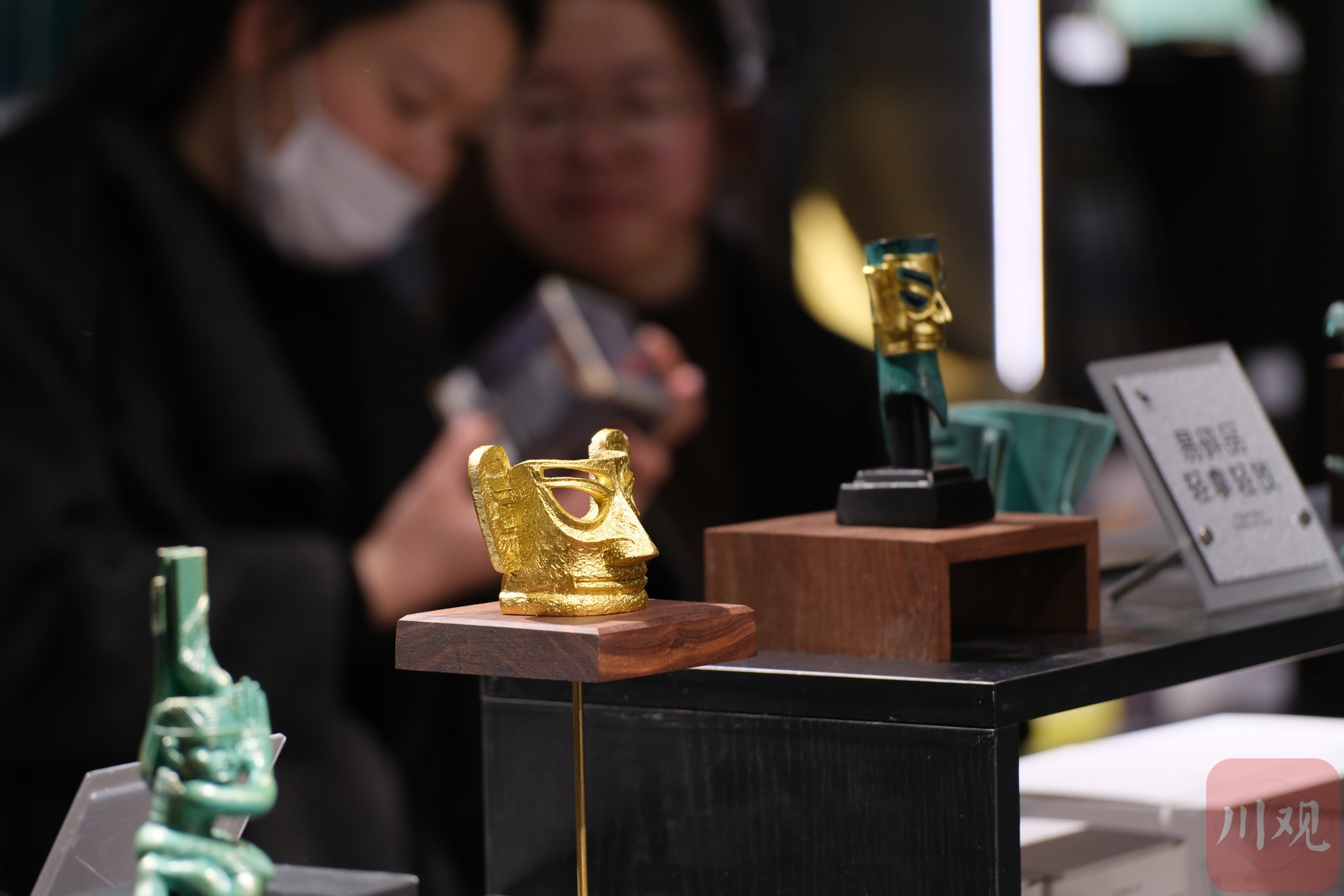 三星堆文创货架前,游客停下脚步,仔细挑选每一件盲盒和手办。川观新闻资料图