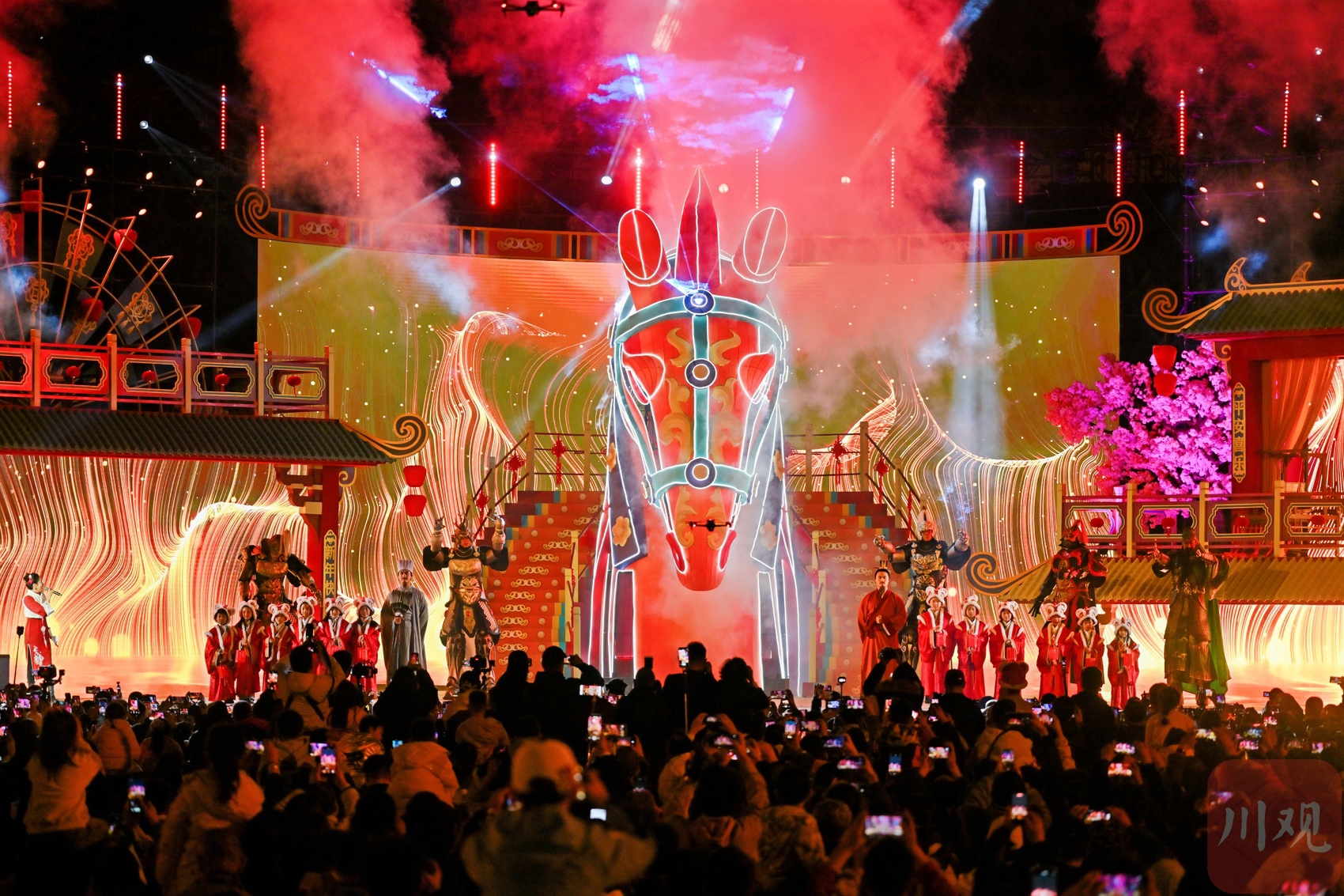 “本届大庙会将以展览、演出、集市、互动打造四维沉浸式参与体验。”成都武侯祠博物馆宣传教育部主任谢佳倩表示,大庙会期间,不仅将有“瑞映山海·华章同脉——天府与广府吉韵对话展”“马舞新春——丙午马年全球生肖文化大联展”“青睐绵阳·文韵梓潼——梓潼文旅精品展”等精彩展览,演艺矩阵也不断突破传统边界。届时,锦里结义楼的川剧变脸,乌衣巷的古风舞蹈,散点戏剧以及川剧经典折子戏等连台好戏将不断上演。数字浪潮风也刮到大庙会。不仅机器人化身“赛博喜神”定时展开表演,全息关羽还将破次元空降,裸眼3D技术复现“武圣”名场面。