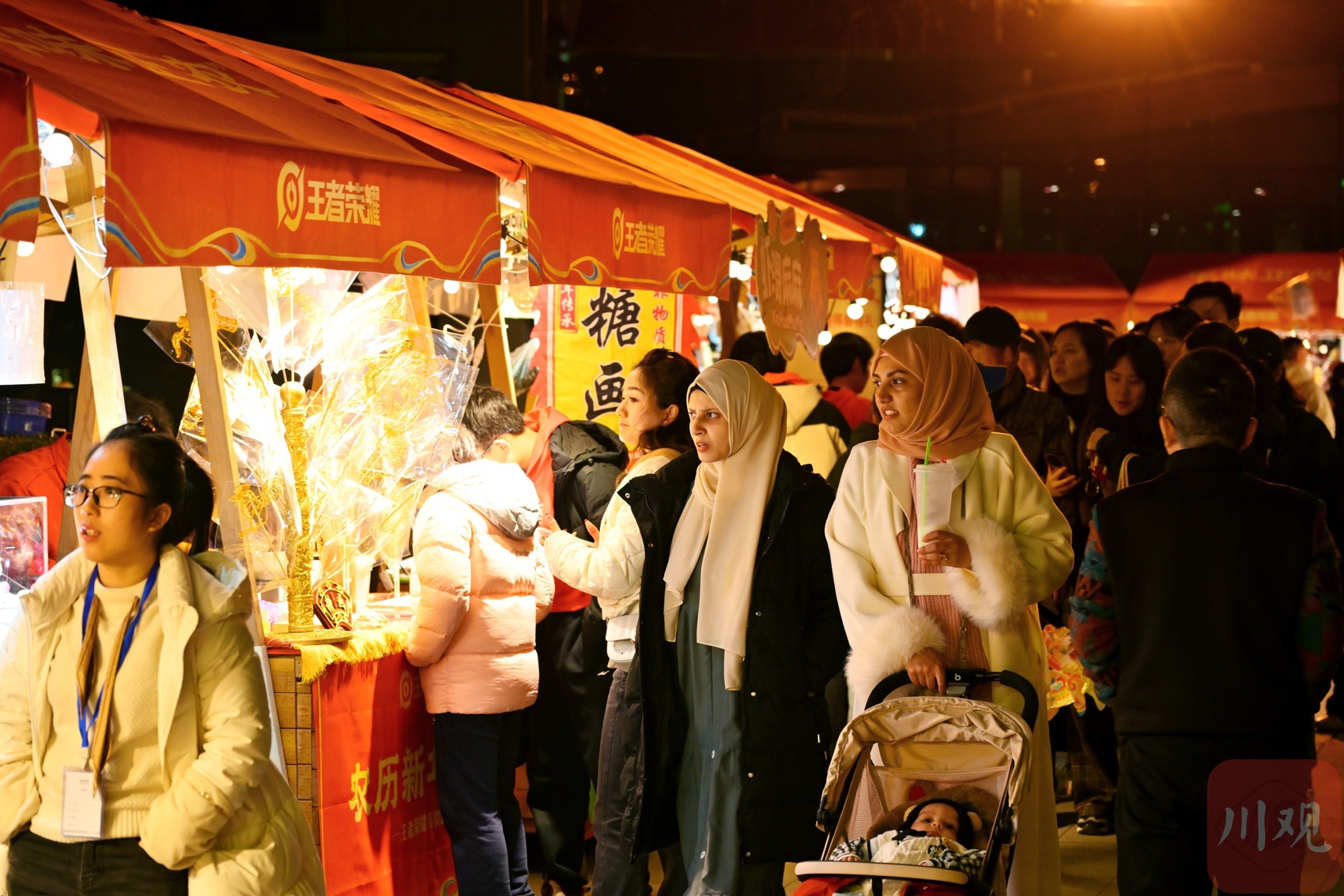 游客逛庙会。
