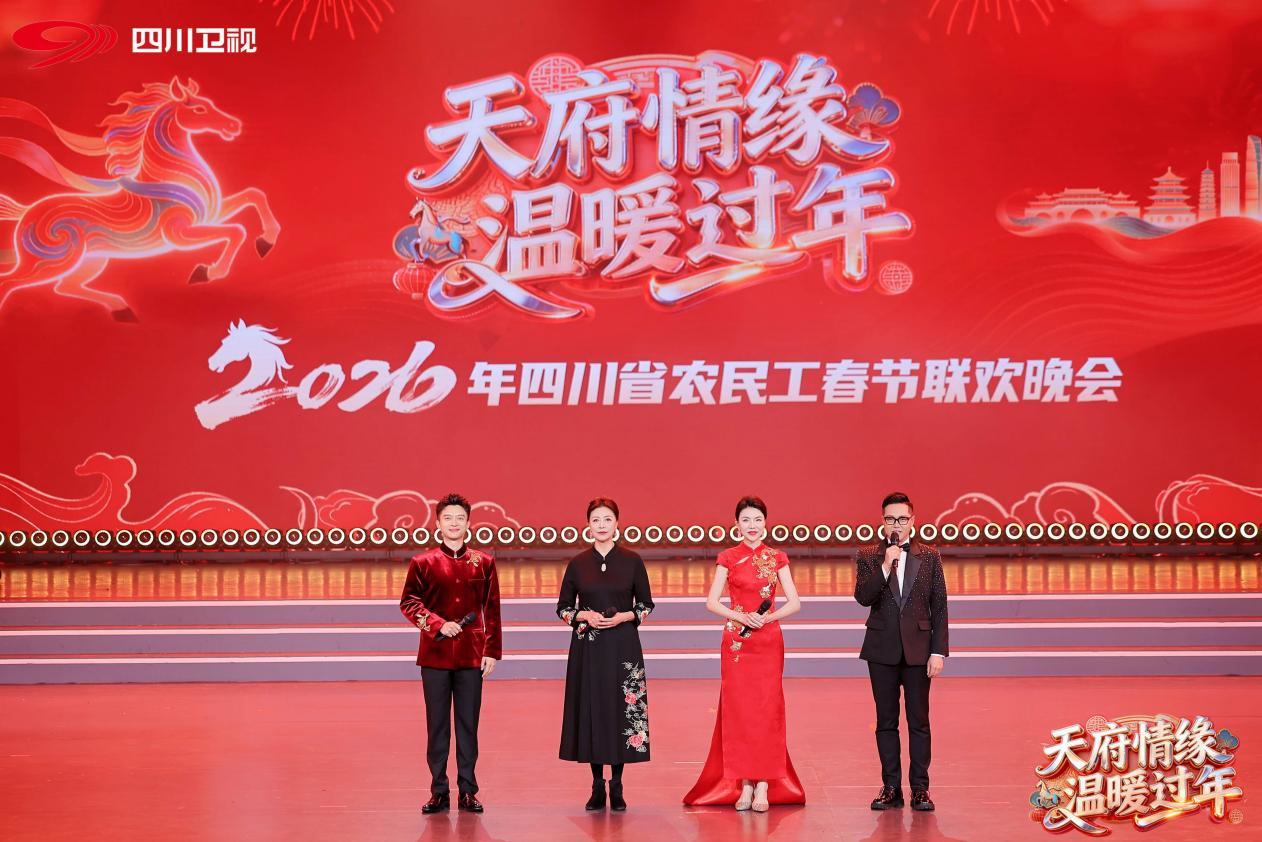 2月17日晚,由四川省人力资源和社会保障厅主办、四川广播电视台承办的“天府情缘·温暖过年”2026年四川省农民工春节联欢晚会温暖启幕。晚会以“骏马精神”为主线,通过歌舞、故事、非遗展演等形式,为全省2600万川籍农民工送上饱含家味与情味的新春祝福。