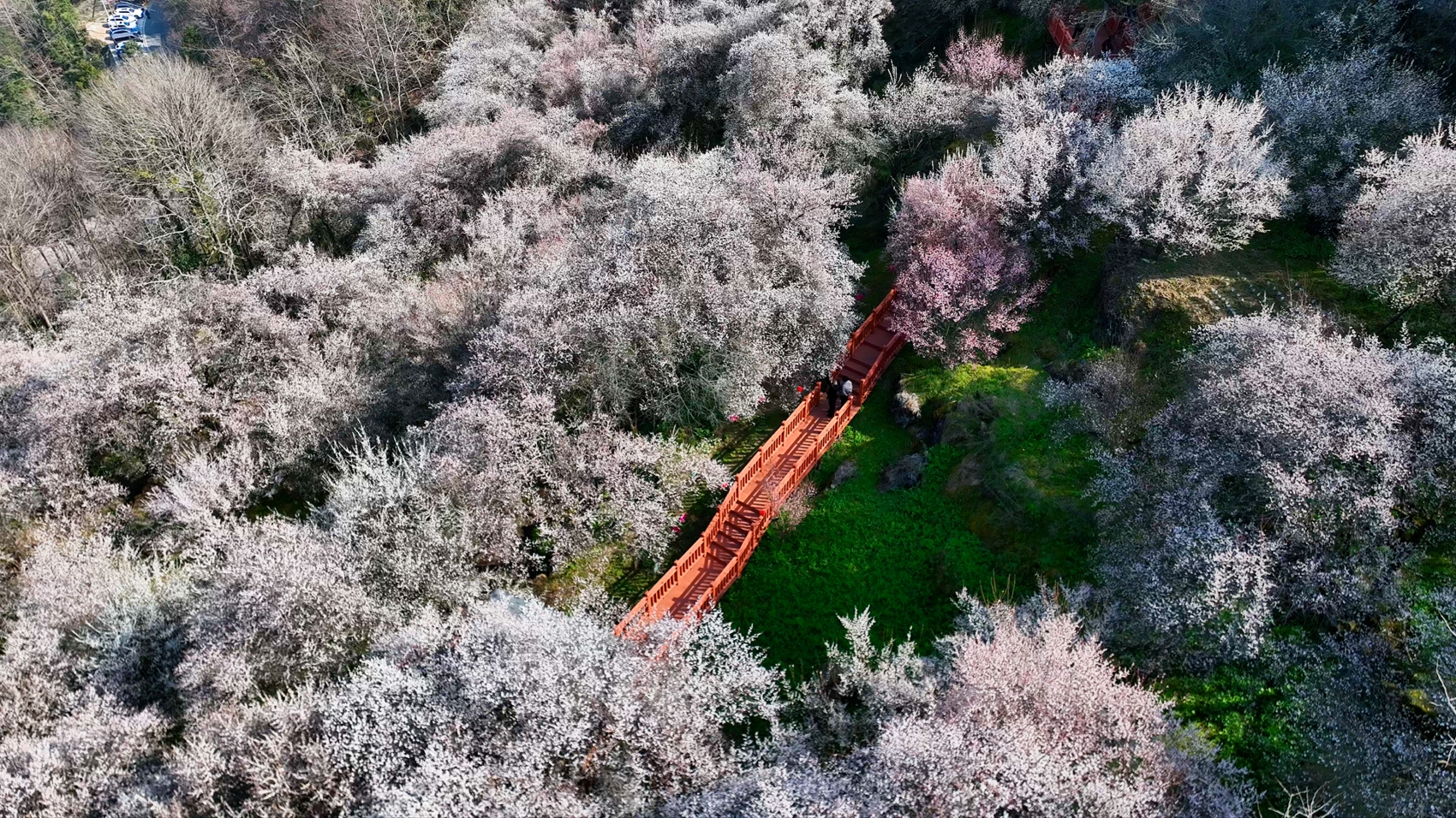 春节期间,各地天气晴好。位于平武县平通羌族乡印象梅林景区的万亩梅花竞相绽放。春日暖阳之下,各地游客纷至沓来,赏梅花、购山货、品美食,在阵阵梅香中,感受自然之美,共度“梅”好时光。