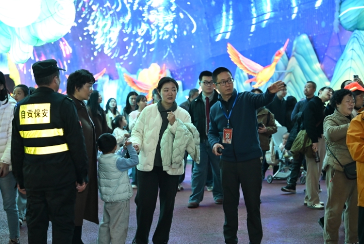 “最忙的时段是每晚的7点半到9点半,客流如织,我们必须像一台精密的仪器,保证每个环节高效运转。”曾杰一边盯着监控大屏上实时跳动的人流数据,一边向记者介绍。屏幕里,数千名游客正有序涌入,而在看不见的背后,是一场关于安全与服务的“硬仗”。为了应对春节“爆满”的客流,运营团队提前制定了周密的保障方案:增开夜场门票引导错峰、增设导向标识分流、在高峰时段实行单向通行。开园后,最让曾杰紧绷神经的则是“安全”二字。“一旦出现人员受伤或游客走失,必须第一时间赶到。”他说,为了做到运营“零故障”,团队严格执行开园前、闭园后双时段全面检修,从每一根线路到每一盏灯组,事无巨细。