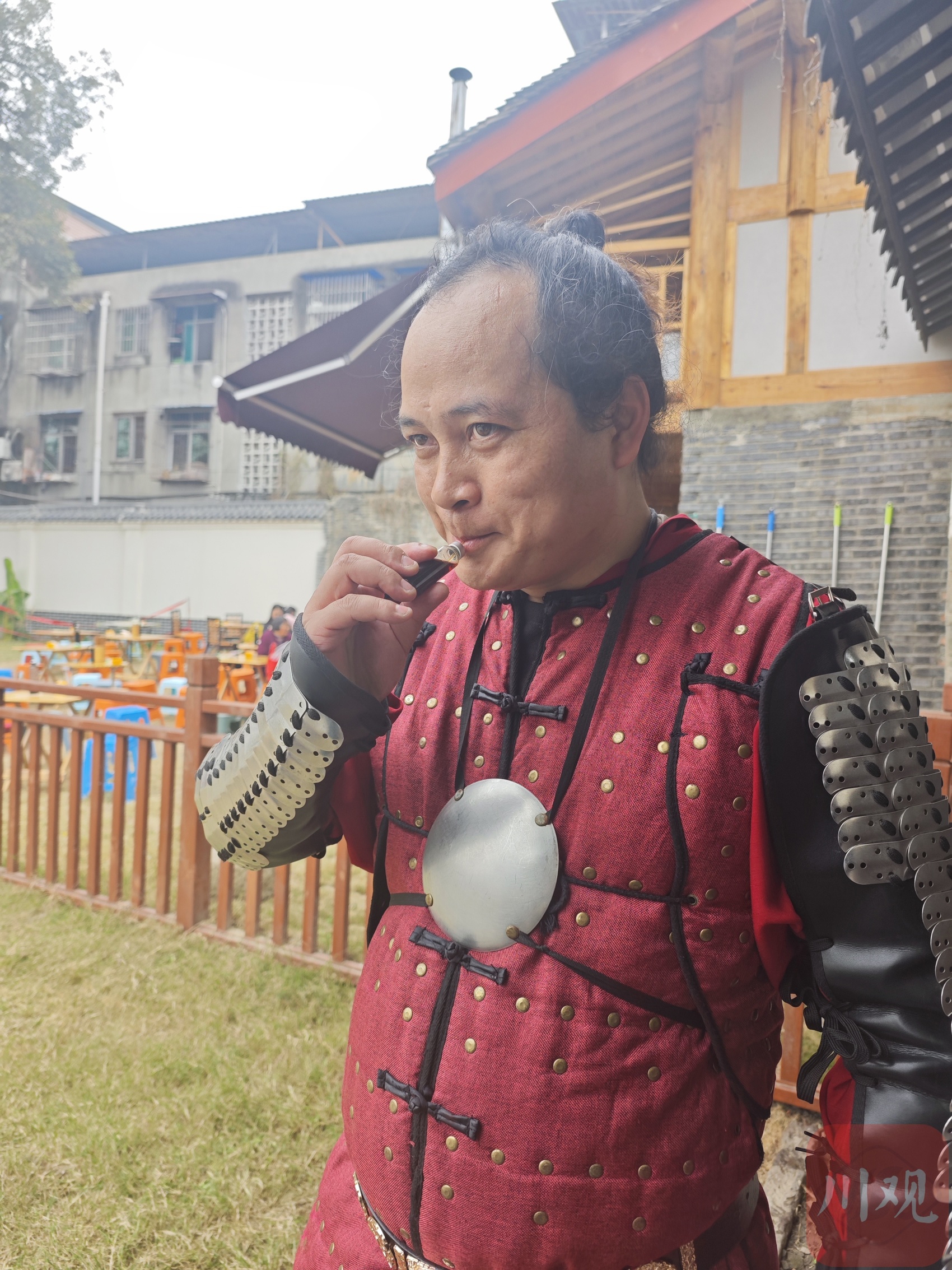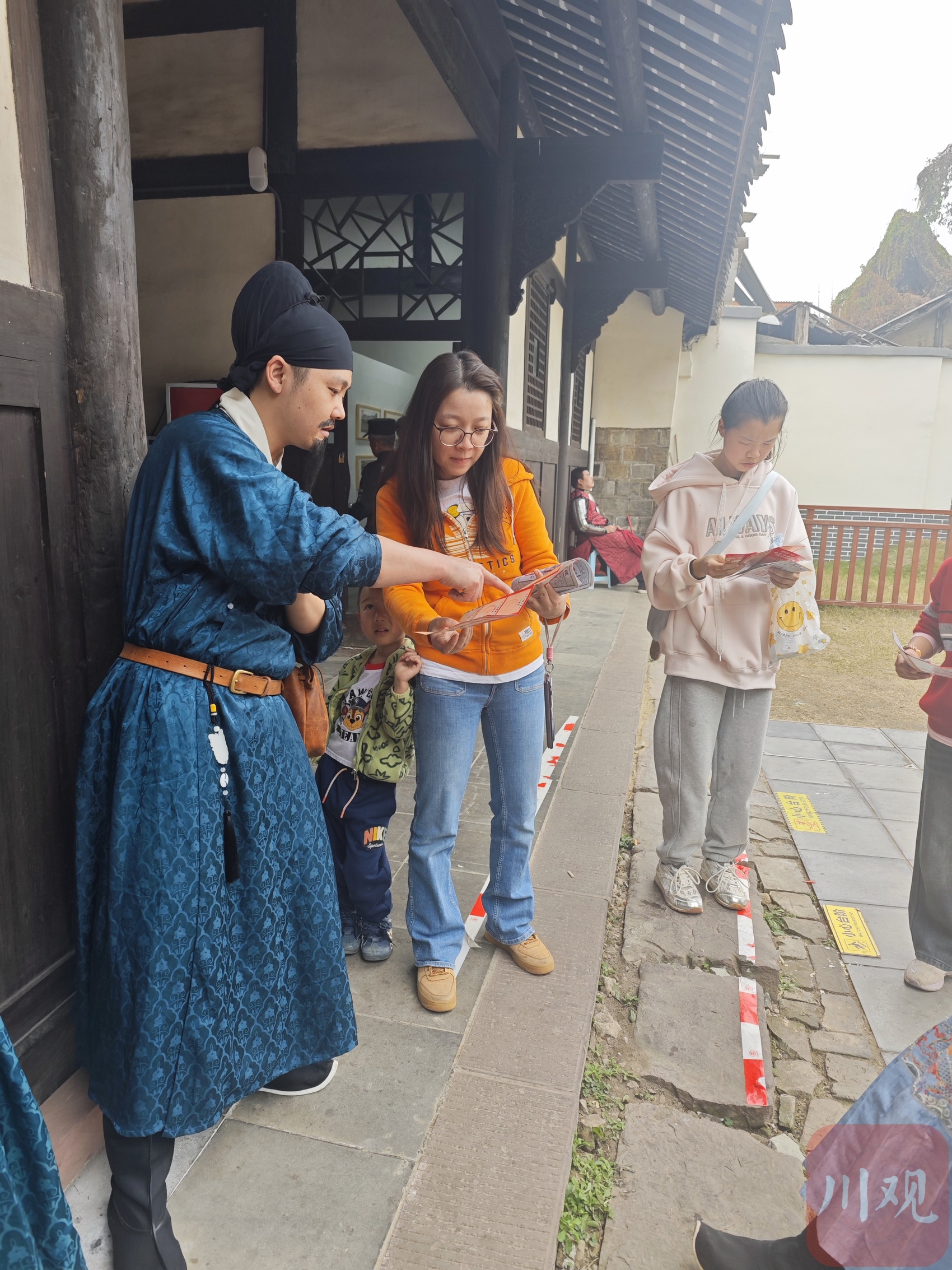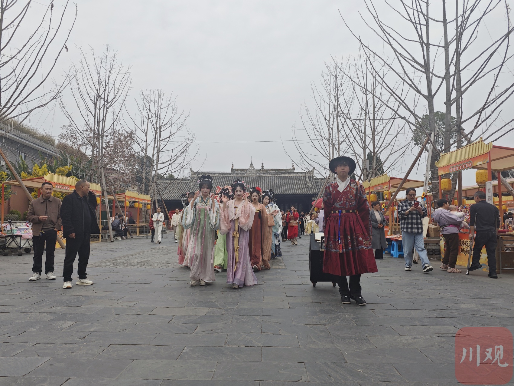 正月初六,年味正浓。成都青白江区的城厢古城文化街区,进入武庙右手边的房间里,身着女款侠士风的钟琴指挥着大家换好汉服,推门而出,阳光下,仿佛古画中走出了一队古装人马。