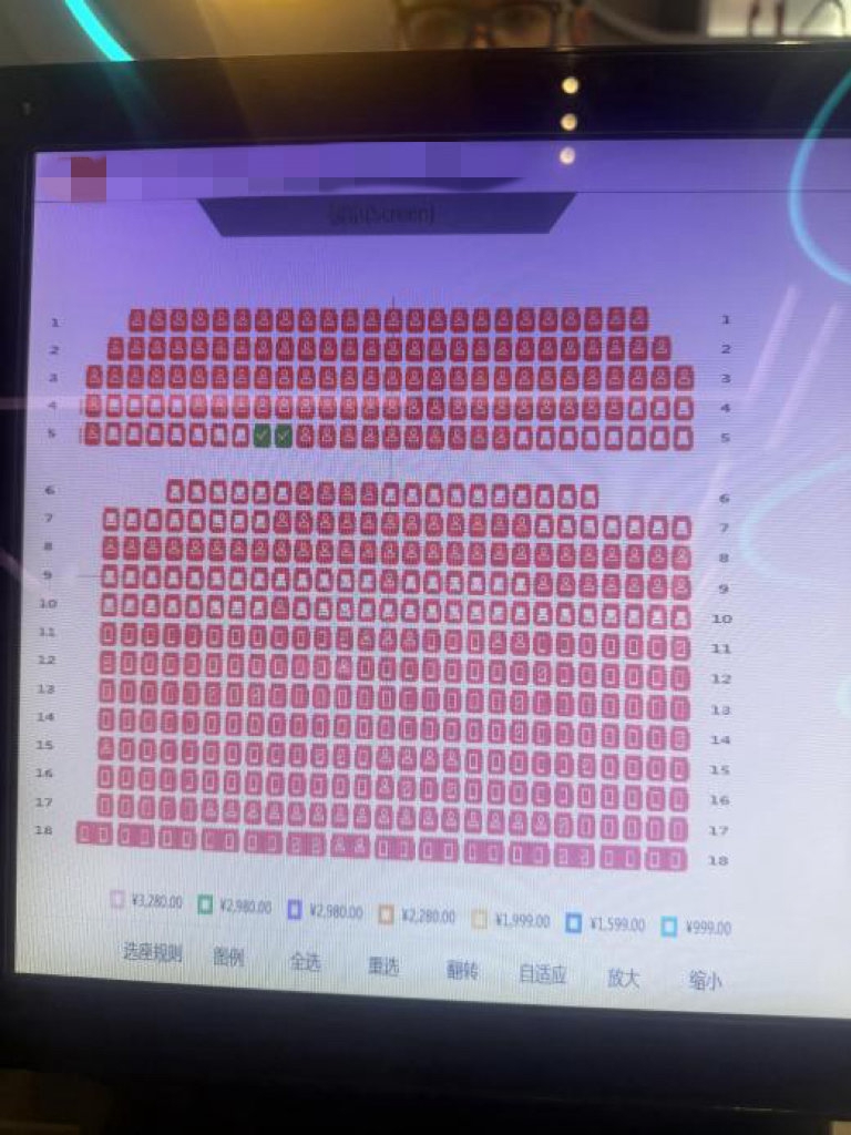 这还不是最高的价位。社交平台上网友反映,成都某影院的路演线下选座图中,票价从999元至3280元不等。一位通过个人票务渠道购票的观众告诉记者,他以3400元的价格买到了第一排靠边的座位,而他手中的纸质票根显示:票价2960元,服务费320元,合计3280元。