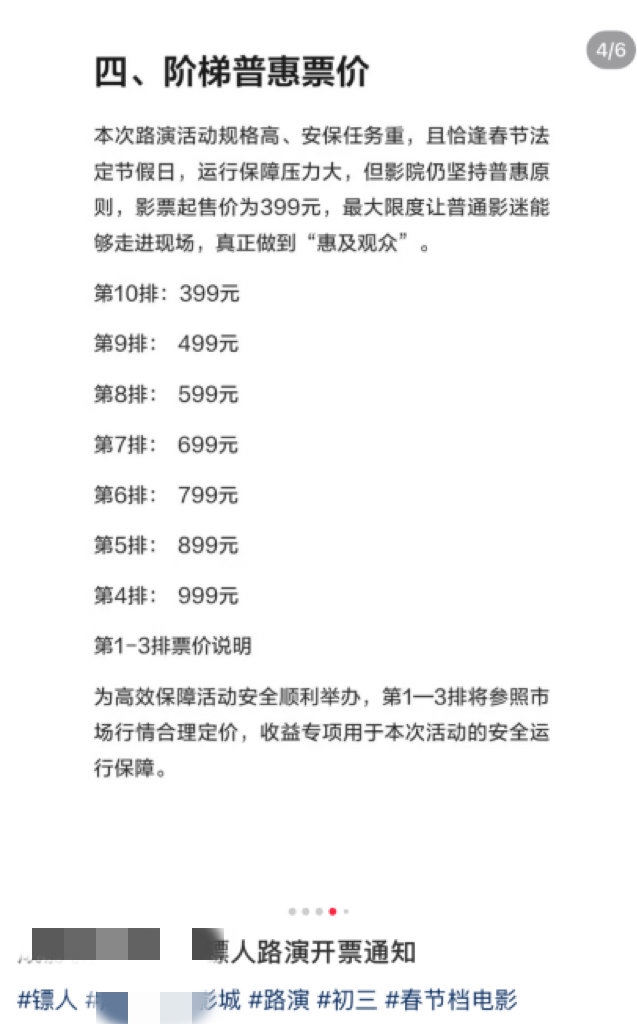 同样是《镖人:风起大漠》的路演,杭州、苏州的票价区间仅为199元至999元。为何成都场要贵出这么多?电影路演票价到底由谁定?