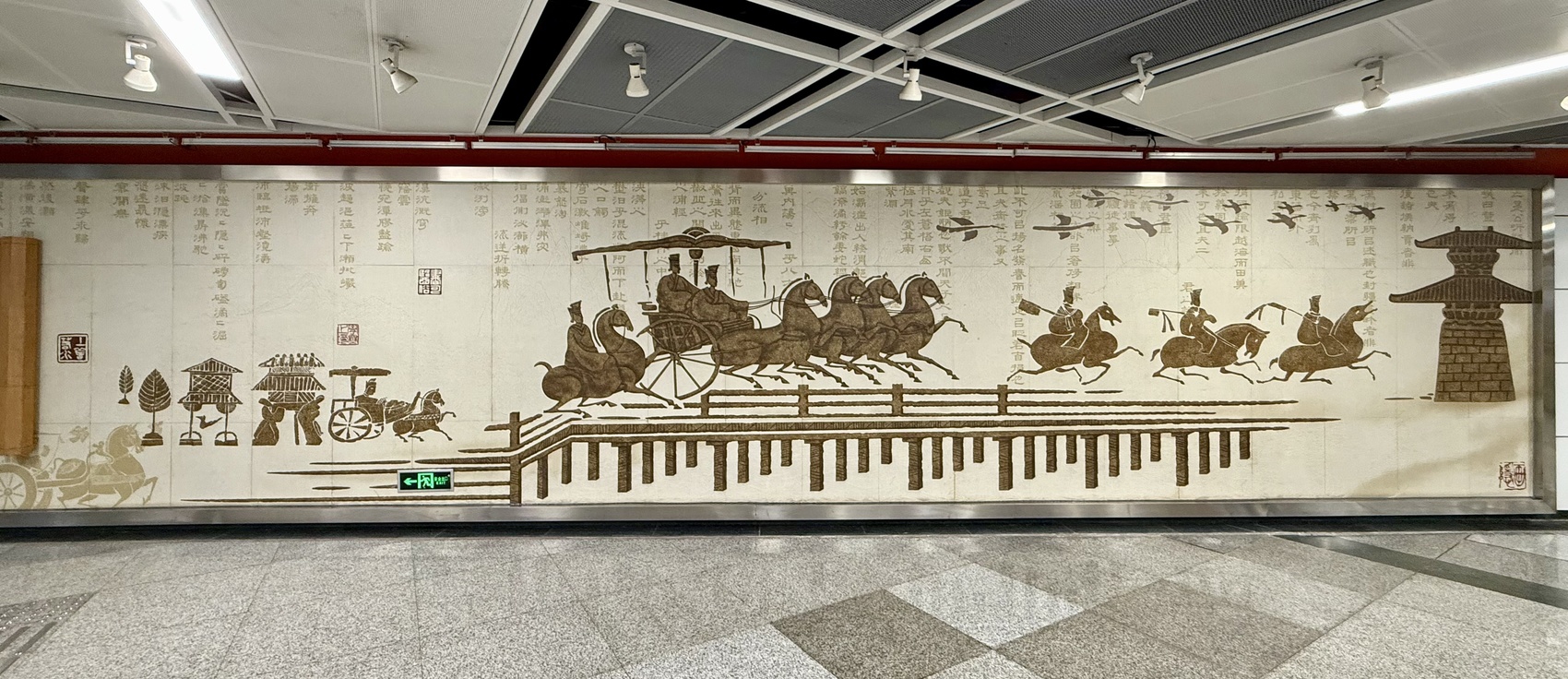 成都地铁驷马桥站内,根据司马相如故事创作的墙绘