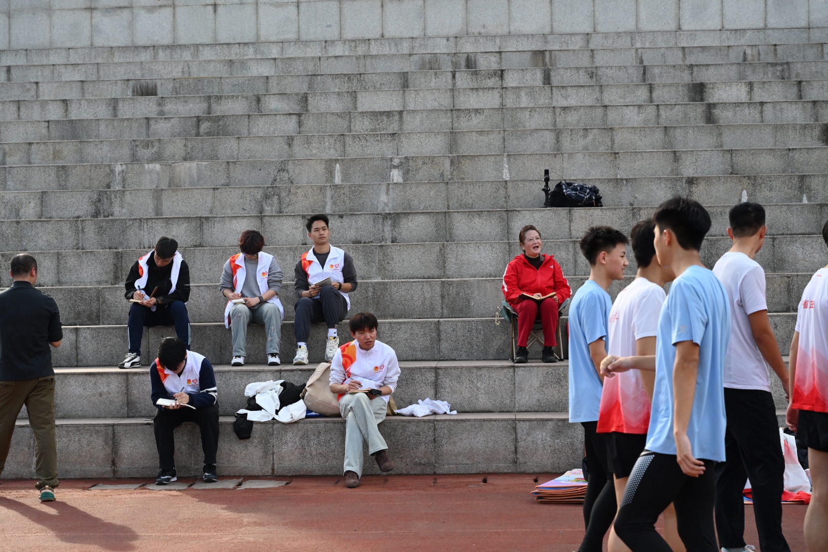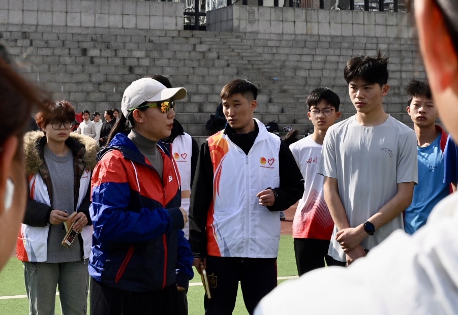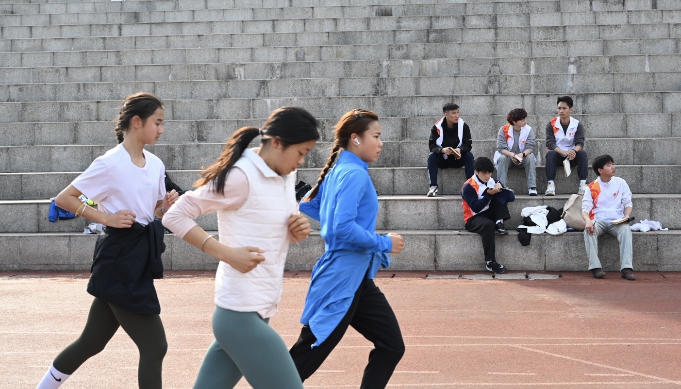志愿者在四川省田径学校观摩学习