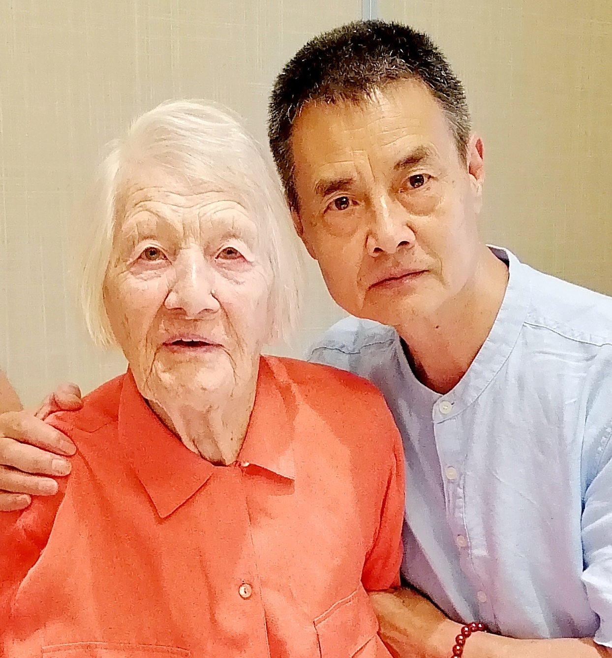 2021年,《尘封与重现》译注者王曙生(右)与106岁的伊莎白在一起(邓长春 摄)