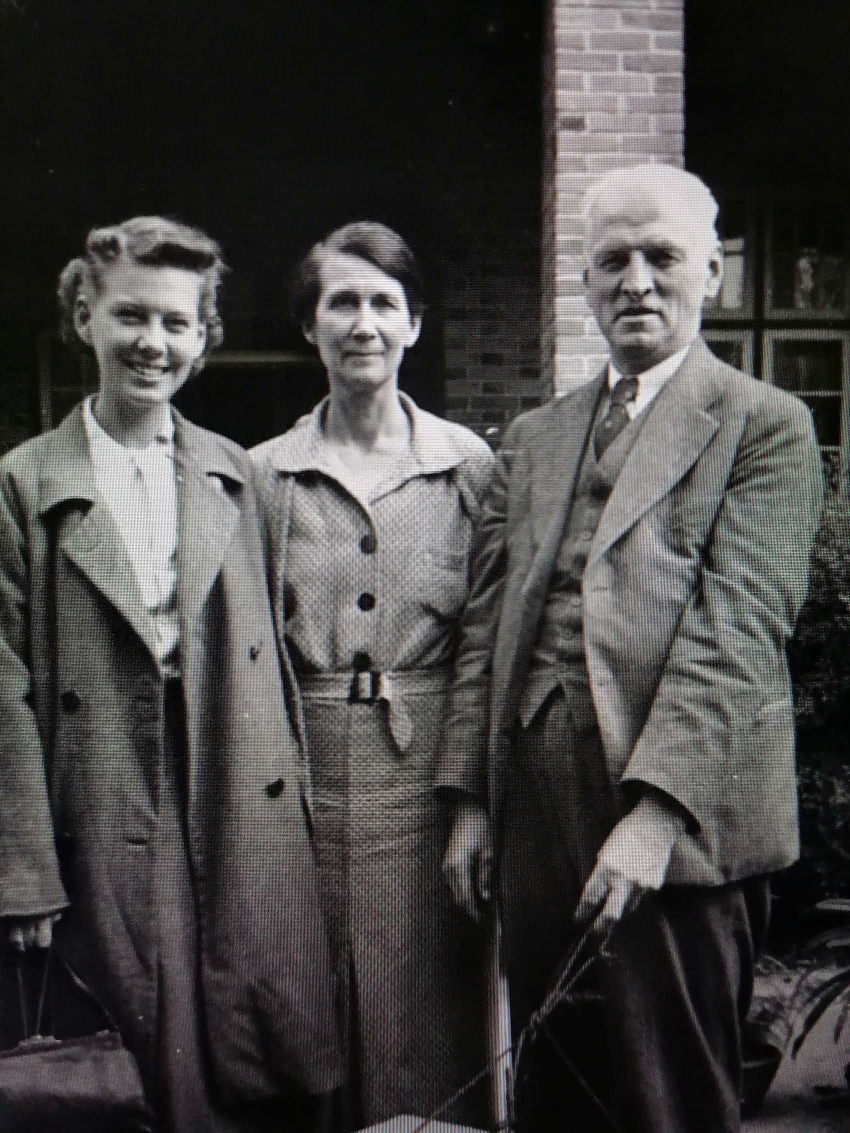 1938年11月3日,饶和美(右)、饶珍芳(中)夫妇在成都四圣祠北街18号寓所前,为即将前往川西考察的女儿伊莎白送行(西南交通大学出版社 供图)