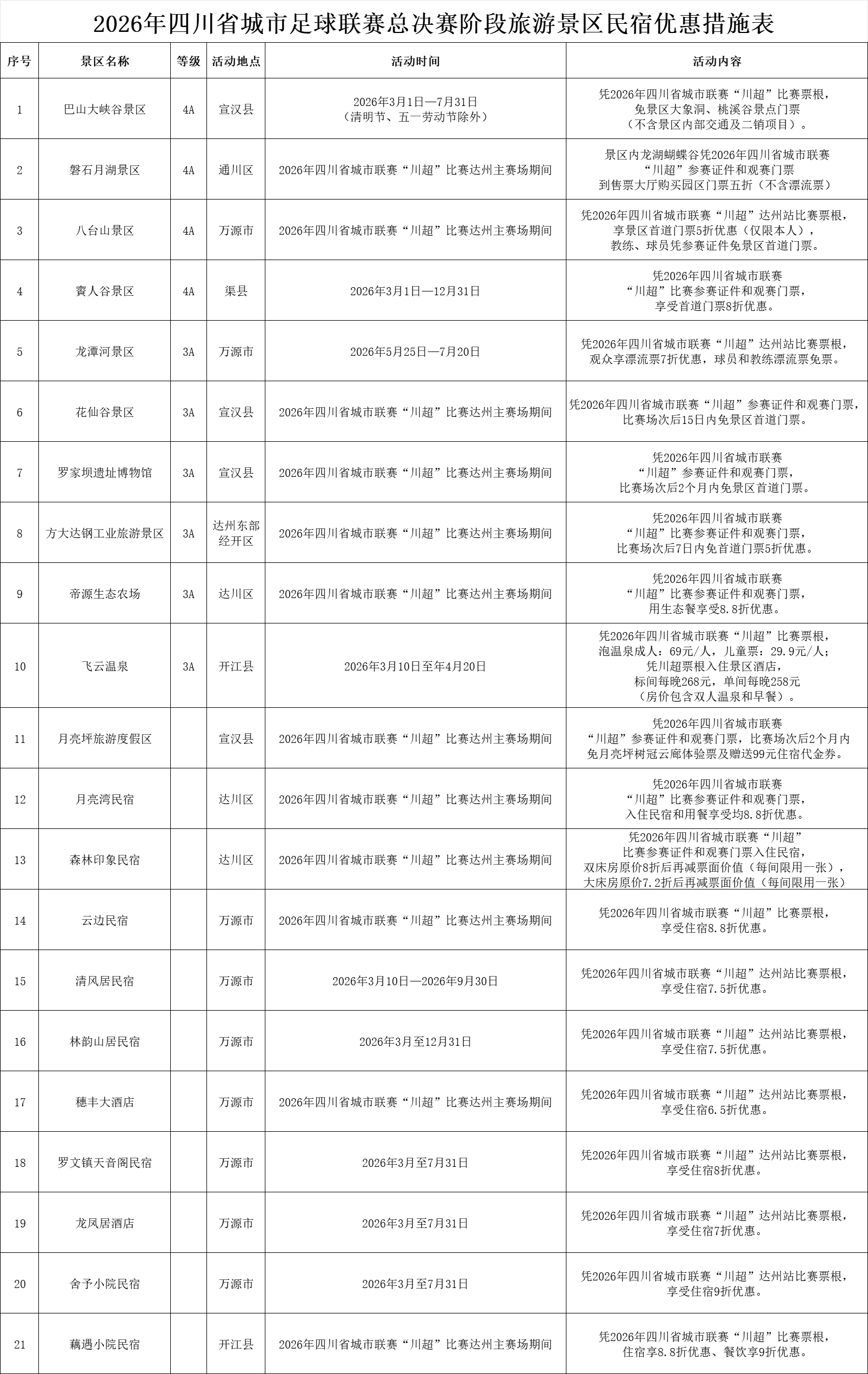 达州市部分景区、民宿推出“川超优惠”