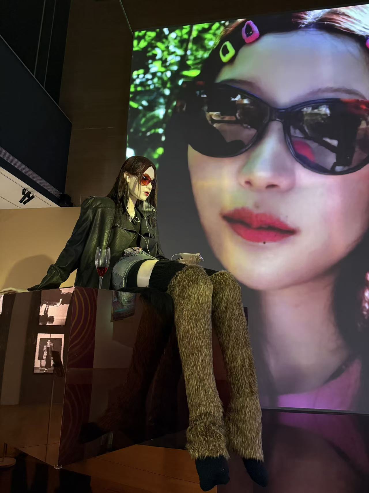 在本届双年展上,备受瞩目的《深梦》就出自叶锦添手笔。作品以16岁的少女形象Lili为主体,高4.6米,身着黑色皮衣,戴着墨镜,拿着手机,身边一杯红酒,一副酷酷的样子,曾在德国科隆大教堂、美国纽约时代广场等地展出。