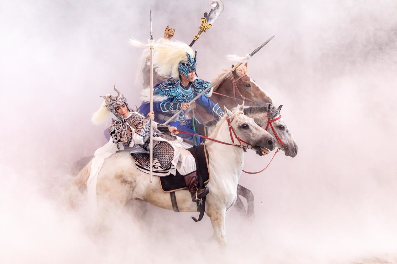 成都是三国文化重镇。小镇另一部核心作品《马超镇守都江堰》则以6000平方米真实沙场为舞台,演绎马超临危受命镇守都江堰的传奇故事,生动塑造马超、诸葛亮、刘备等三国英雄形象。现场还原的城楼、军营等场景,让观众身临其境感受三国风云、跌宕起伏。