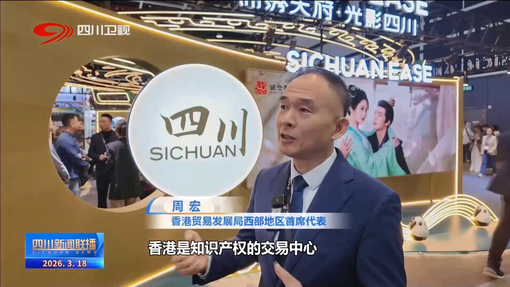 香港贸易发展局西部地区首席代表 周宏:香港是知识产权的交易中心,也是中外文化艺术交流中心。国家给我们的这个新的角色,我们就要跟四川省一起挖掘这其中的商机,所以未来的合作空间很大。