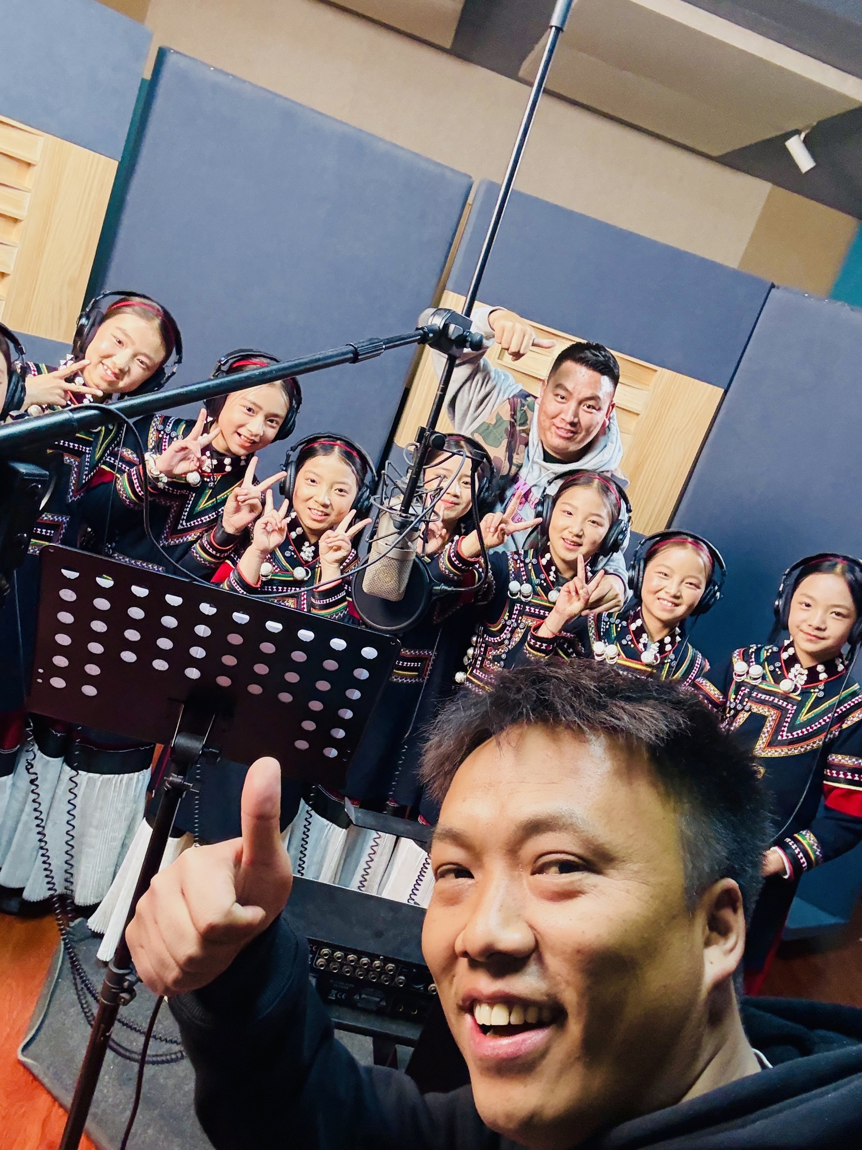 “当时我特别激动,这样一首源自凉山本土的歌曲能走进大银幕,全国观众都能听到孩子们的歌声。”吉布小龙带着合唱团的10个小朋友,在西昌的录音棚里花费4个小时,完成了彝语部分的演唱。