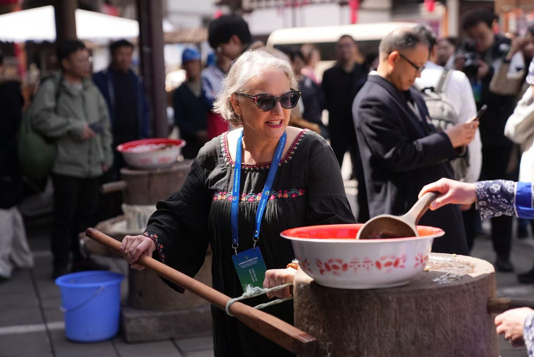 美国嘉宾体验推豆花