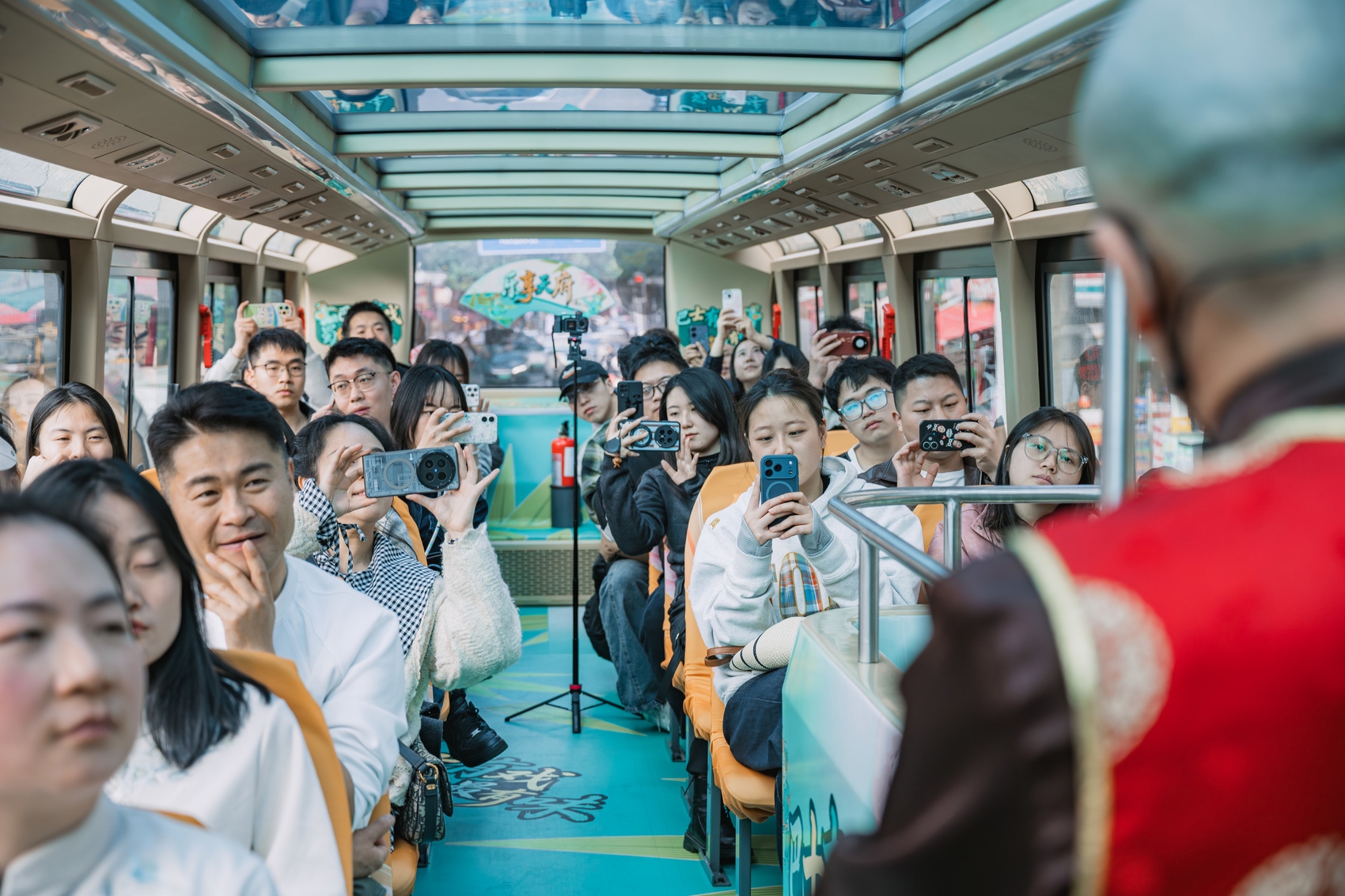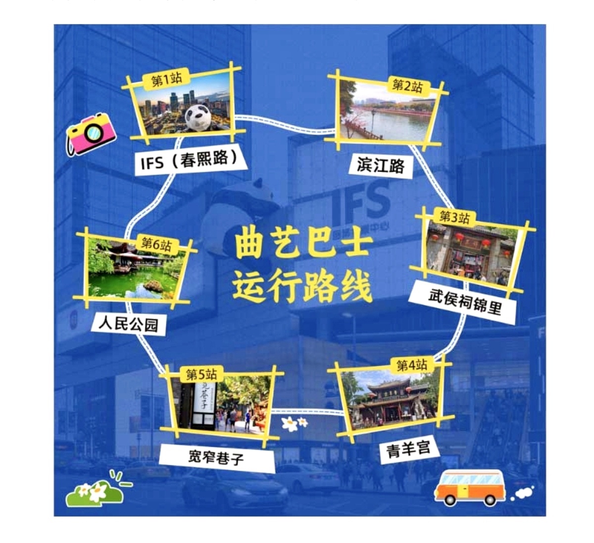曲艺巴士从春熙路站出发,经过滨江路站、武侯祠锦里站、青羊宫站、宽窄巷子站、人民公园站,全程1小时左右。在曲艺演员之外,专业讲解员随行,讲述城市历史、地标故事与非遗魅力,丰富文旅体验。