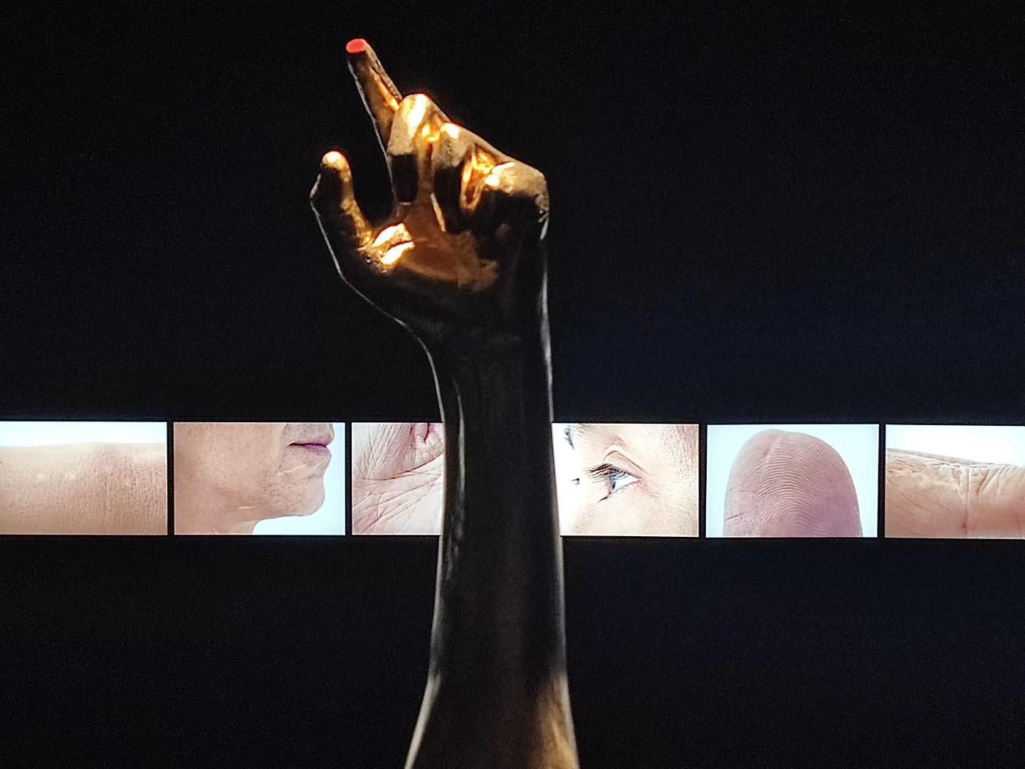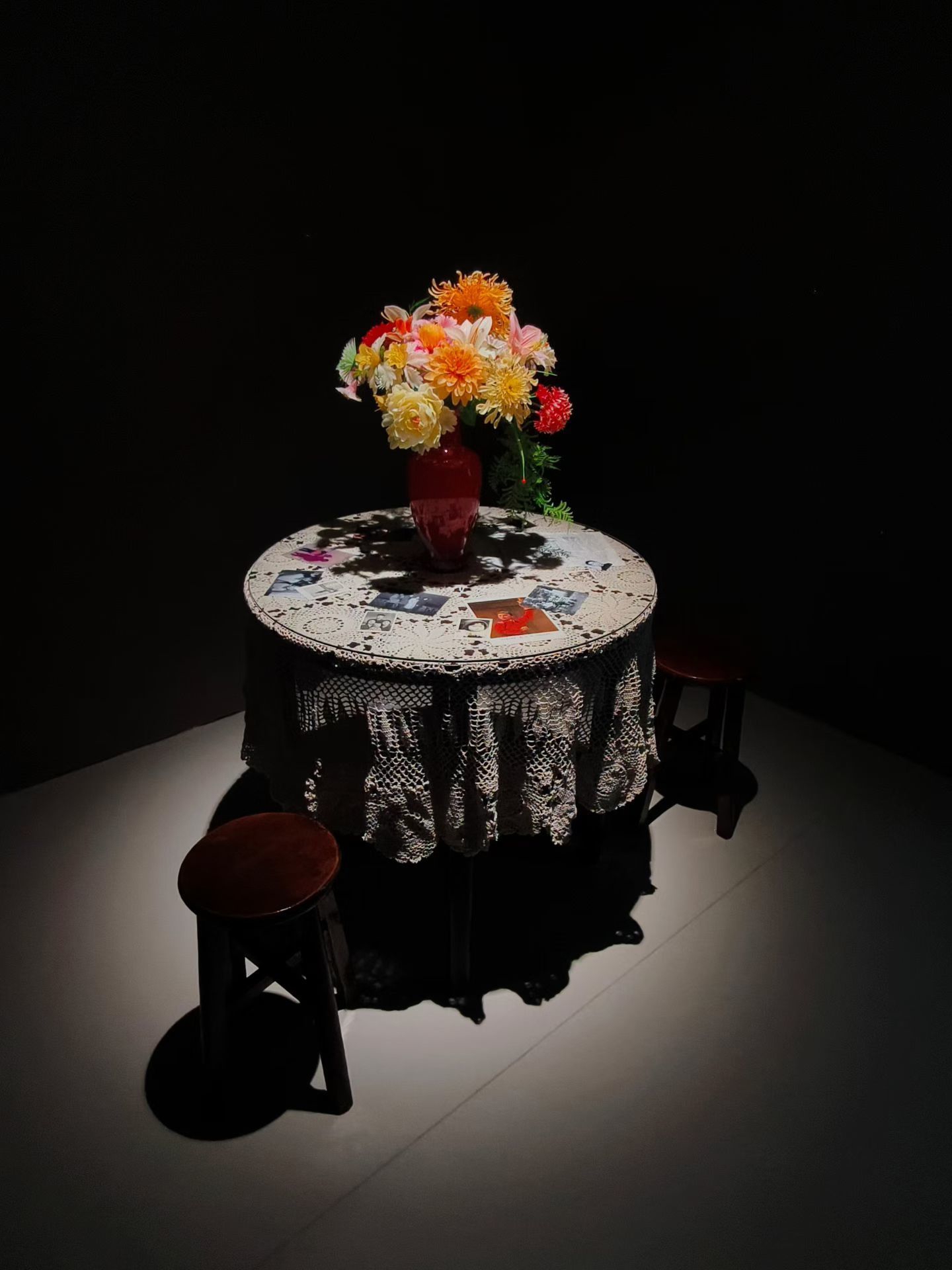 此次展览展出了这一项目的5个部分:《伤》《家庭肖像》《家宴》《迷雾》《记忆像一片海》。例如,《伤》包括12张照片和1件雕塑,展现了殷九龙身上的一道道伤疤,它们都是小时候在家乡因各种原因留下的。《家宴》则是2023年春节,殷九龙回到老家,分别去姐姐和哥哥家里吃饭的影像记录。8个家庭的团年饭,8部纪录影像,带来海量的信息,构成中国20世纪下半叶的四川山区一个多子女家庭的微缩样本。