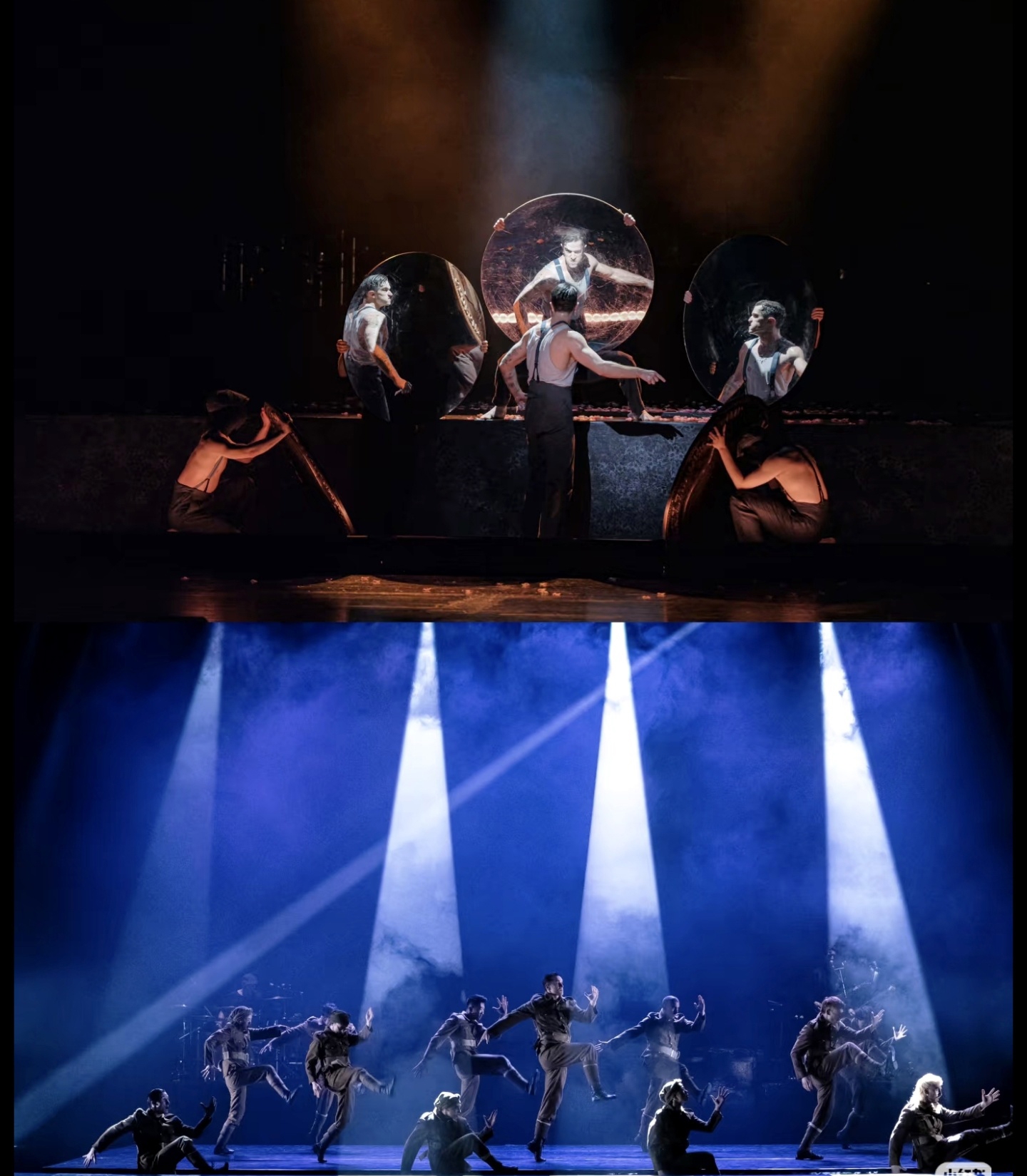 频闪灯光重现战争创伤、逼真枪声与舞者动作精准同步、芭蕾的优雅与现代舞的自由结合……舞剧将一战代表性大战索姆河战役转化为舞台上的震颤。舞者们身着暗色系服饰,以凌厉的肢体语言与精准的节奏把控,将其粗犷的魅力和复杂的角色,转化为引人入胜的舞蹈段落。