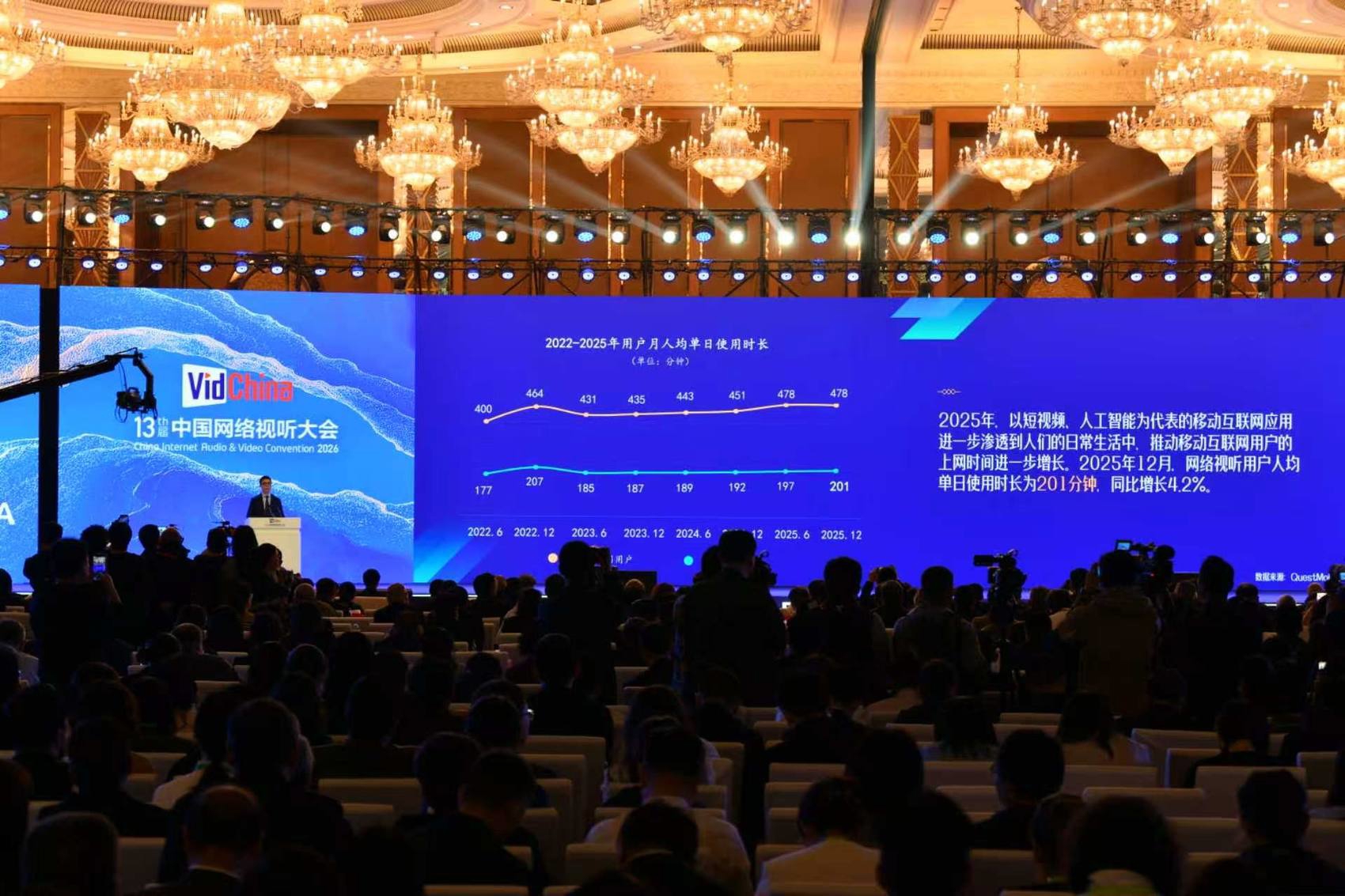 4月15日上午,第十三届中国网络视听大会在成都开幕。会上,中国网络视听协会副秘书长周结代表协会发布了《中国网络视听发展研究报告(2026)》。这份延续了十年的行业“体检报告”,用一组组扎实的数据,勾勒出中国网络视听产业过去一年的成长轨迹。