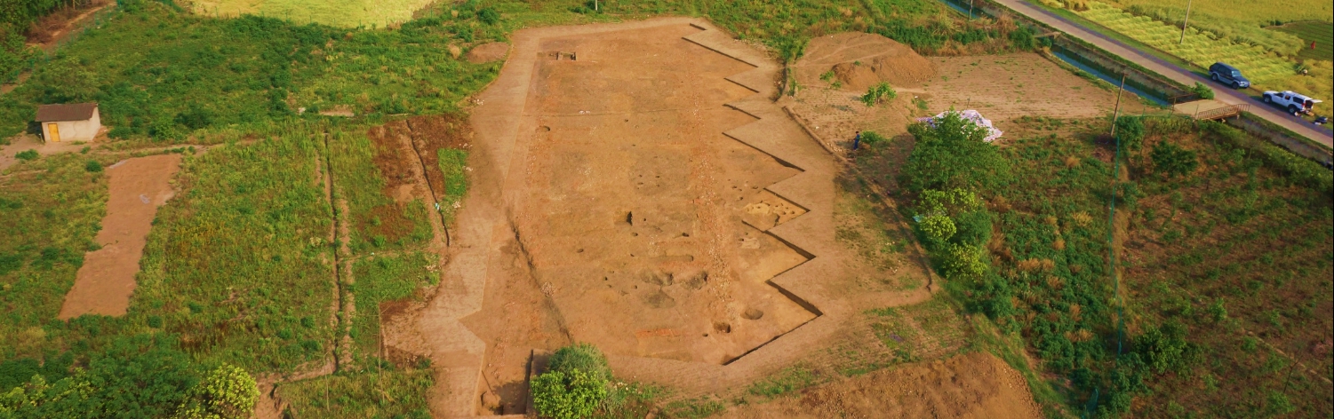 考古发掘不断实证着此前的推测。2023年至2024年,考古人员在月亮湾小城东北部的真武宫地点发现了玉石器作坊。测年结果显示,这处玉石器作坊在公元前1550年至公元前1250年左右,大致相当于商代中晚期。在对作坊持续的发掘中,出土了玉人像、玉牙璋、绿松石珠、石蛇等4000余件文物,种类十分丰富。而月亮湾小城东南部的燕家院子地点,近年也发现了一处人工堆筑的土台及面积超过200平方米的大型建筑基址。而建筑基槽内填充物全是陶“板状器”,可以看出大多经过火烧、直立插入基槽,或许代表了木骨泥墙以外的砌墙工艺的出现。
