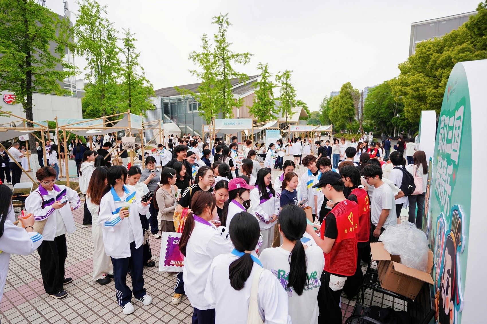 4月20日—21日,活动分别走进浙江旅游职业学院和阿里巴巴园区开展专场推介。在高校,以“趁青春·趣四川”为主题开展特色快闪活动,苏东坡NPC与青年学生展开“飞花令·蜀韵传情”等趣味互动,精准对接青年出游需求。在企业园区,围绕“即刻入川·FUN享慢生活”主题,打造轻量化、沉浸式川蜀场景,推出疗愈轻度假攻略,让职场人群近距离感受四川悠然安逸的文旅氛围。